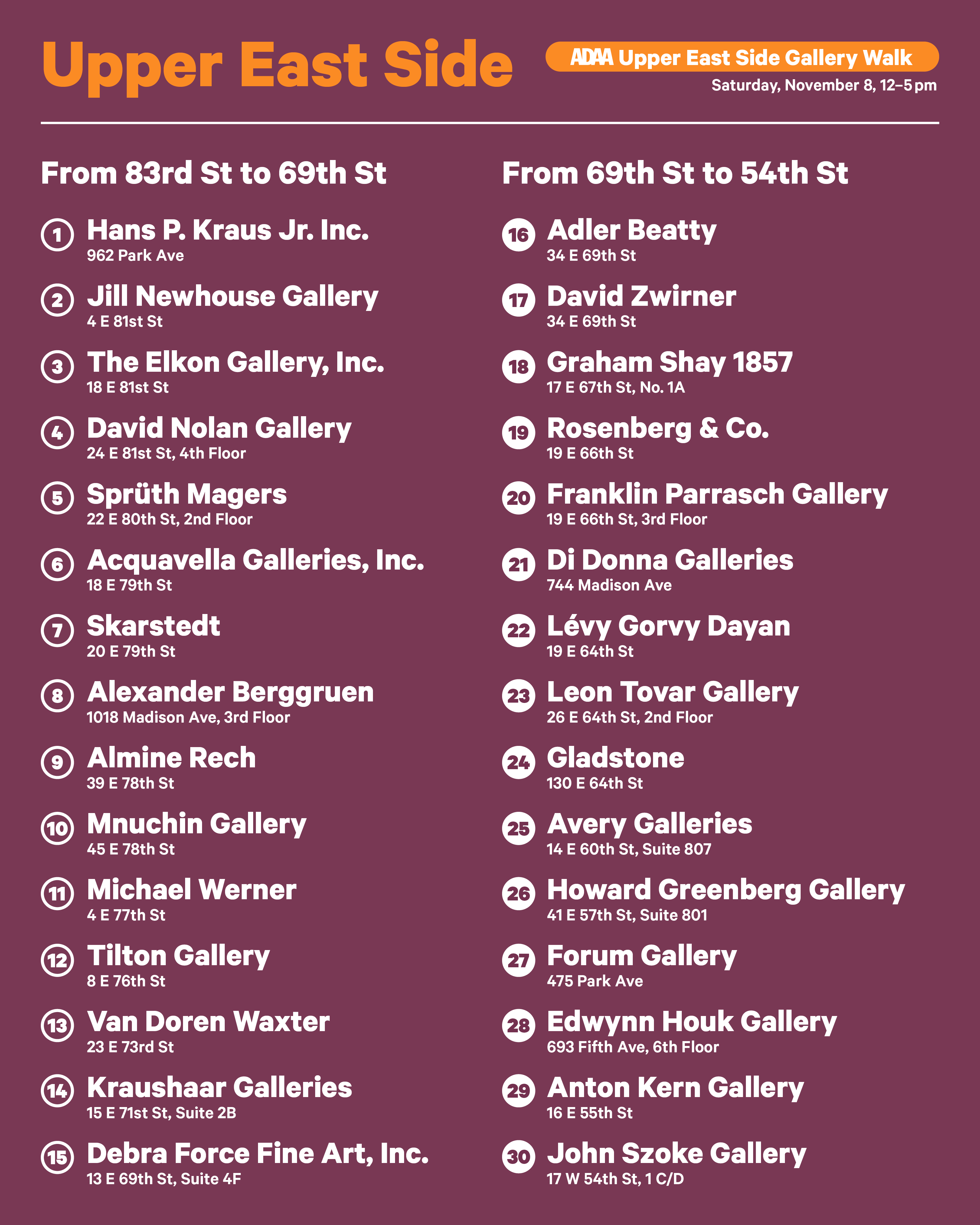 Our Gallery Walk returns—this time to Manhattan’s Upper East Side!
