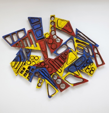 Drawing from philosophy, history, and mythology, Finlay spent nearly forty years developing a rigorous and intricate body of work. His concrete poetry—where the form is as important as the meaning—confronts Western cultural values, referencing the French Revolution, World War II, and classical civilizations. Beauty, violence and the sacred coalesce in his works mirroring the dissolution of ideals in contemporary politics and culture at large. Believing that the positive Western symbols had been drained of their meaning by consumerist assimilation, he turned to emblems of power and aggression—machine guns, tanks, guillotines—symbols that, unlike commercialized imagery, retained their potency. His art explores the tension between fixed ideas and shifting moods, and between culture and nature.