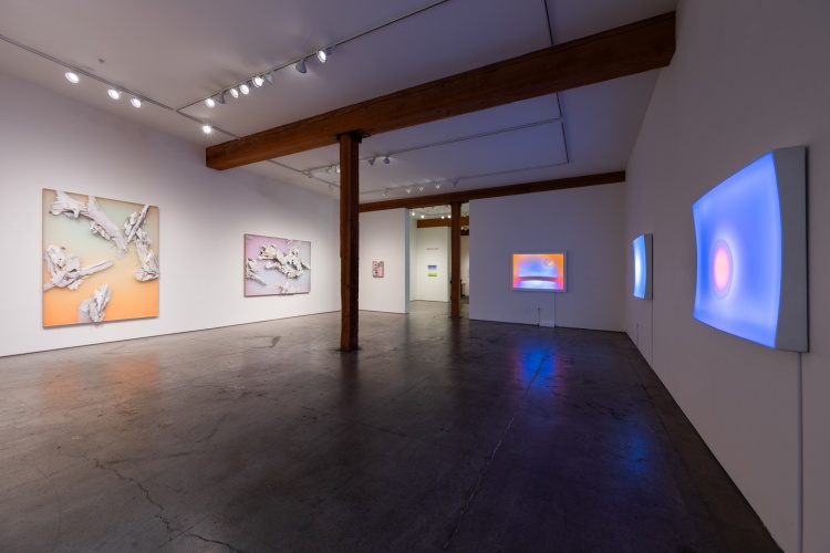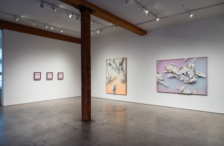 This exhibition includes Malia Jensen’s surreal reimagining of a lightbulb, Bonnie Bronson’s masterful, minimal constructions that reveal themselves to be made of humble cardboard upon closer inspection, Isaac Layman’s perfectly composed portraits of an Amazon box or refrigerator, and Mark R. Smith’s assembly of vinyl and clothing, which draws its form from the original layout of the World Trade Center.