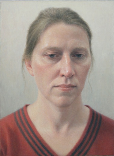 Robert Bauer, "Erica in a Red Sweater," 2012, oil on canvas mounted on wood, 8 3/4 x 6 1/2 inches