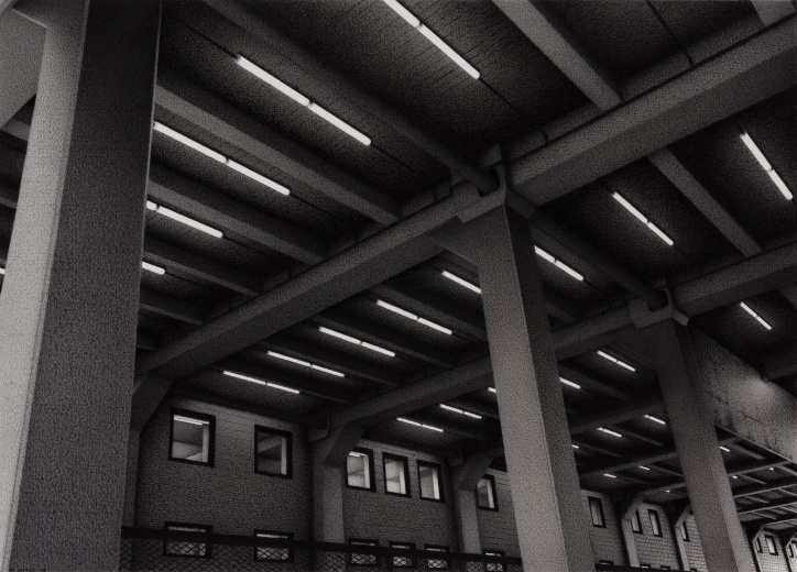 Anthony Mitri, "High Line Park, New York City," 2016, charcoal on paper, 10 3/4 x 15 inches