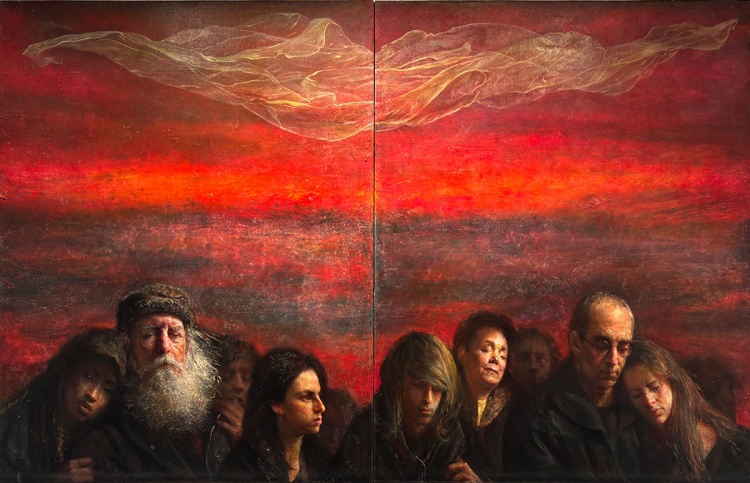 Steven Assael, "Homebound," 2023, oil on canvas, mounted on board, 60 x 96 inches