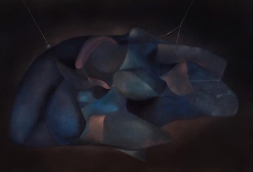Dana James’ (b. 1986) practice is driven by an exploration of dualities and the contradictions thatshape the world around us, such as transience and permanence, darkness and light, and control and chaos. While James has always been interested in visually probing these dichotomies, the artist’s recent pregnancy resulted in a more experimental exploration of them. Having to surrender to the unknown, James embraced it, leading to bolder and more confident brushwork and