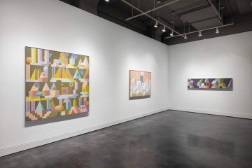 Throughout her career, Andrade worked between two-dimensional, graphical space and a mental world of abstract architecture. This exhibition brings together works that reveal a deep interest in hypothetical three-dimensional space pursued by the artist using geometric solids as building blocks within a whimsical, child-like space of abstraction.