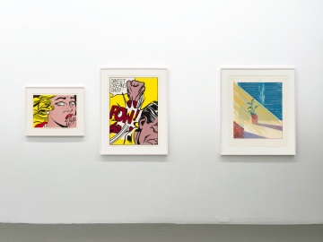 Ellsworth Kelly’s Red Curve (Radius of 8′) and Green Curve with Radius of 20′ are among the most visually striking prints in the exhibition. Though critics placed Kelly’s bold, vibrant forms firmly within the confines of abstraction, the artist resisted such classifications. Rather, Kelly drew his inspiration from the contours of nature and everyday objects—both linear and organic. The featured works invite viewers to contemplate the interplay of form, space, and color.