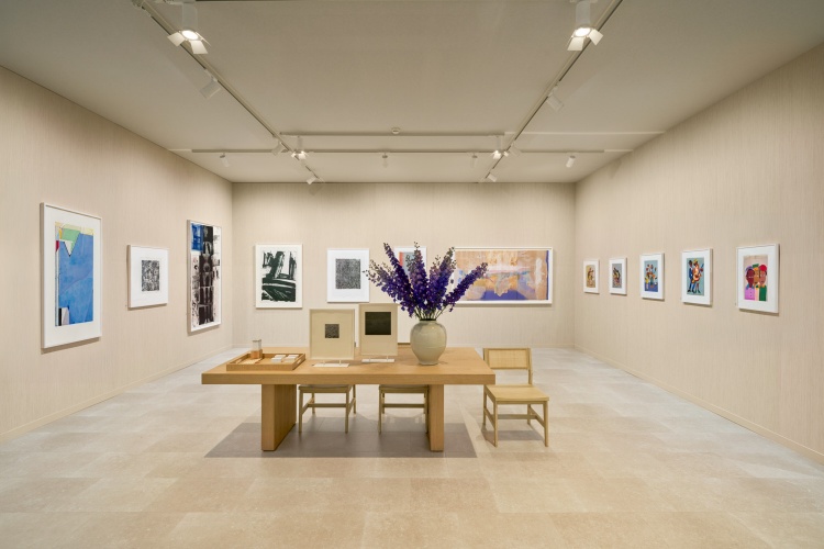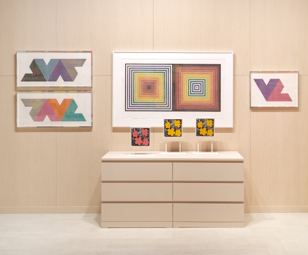 Agnes Martin, whose work has come to define geometric abstraction for many, contributes her signature meditative style to the exhibition. Her 1998 Untitled set of four lithographs captures the quiet beauty of her grid structures. Subtle and meticulously arranged, Martin’s grids offer a serene yet profound exploration of form and line, encouraging viewers to reflect on simplicity and the transcendent beauty of the everyday.
