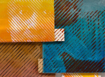 Rag and Bag Idiom IV, 2012 belongs to one of the last series of works Outterbridge made. Harking back to the early Rag Man Series, they are made of canvas, sewn to construct multiple small irregular three-dimensional shapes, stuffed to maintain these shapes. Smaller than most of the earlier Rag Man works, these are painted in bright multi-colored hues. Remnants of other colored fabric or rags are attached and hang loosely. Dynamic and forceful for their size, these works convey Outterbridge’s inner optimism and add a fresh, new dimension to contemporary abstract art.